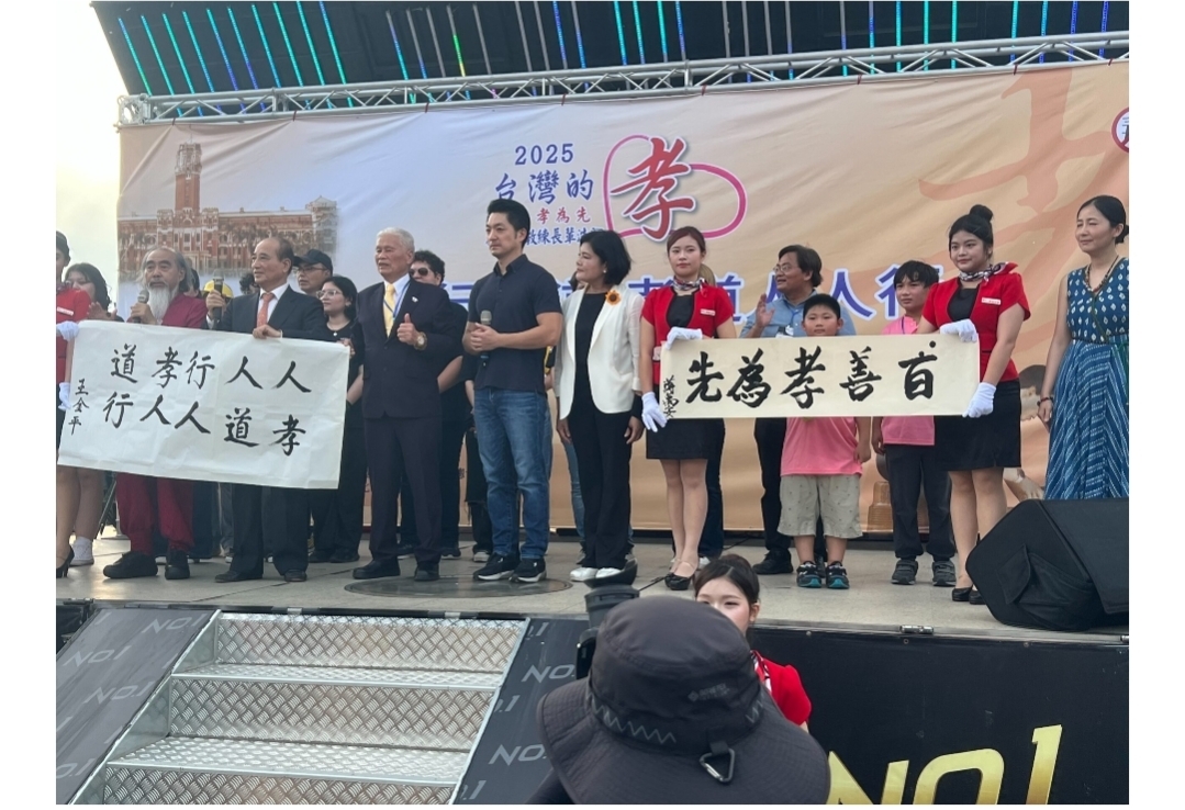 中華傳統文化弘揚孝道總會昨天在凱道舉辦「台灣人人行孝、愛從腳開始——弘揚孝道推行暨反毒宣導」的萬人孝親洗腳活動,榮譽總會長王金平邀請台北市長蔣萬安、雲林縣長張麗善等人共同響應,王金平並與蔣萬安一同在活動上揮毫,寫下「人人行孝道 孝道人人行」、「百善孝為先」,一同弘揚中華傳統孝道文化,活動並邀請上千位民眾共同在凱道上為父母、長輩孝親洗腳。